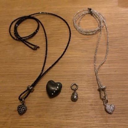 Kæden er 106 / 53 cm lang, der følger 25 stk. perler med til halskæden.