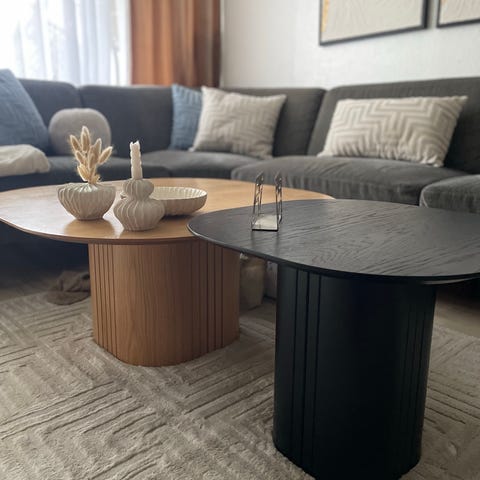 Egetræs sofabord fra Ilva til salg. Det er en sæt med 2 bord mål 128x80x50 cm // 110x60x45 cm.