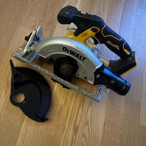 DeWalt Power Shop kap- og geringssav. Stationær rundsav monteret på skinne/arm til præcis længde- og geringsskæring af træ og pladematerialer. Saven er udstyret med justerbar vinkelindstilling og dybdestop samt beskyttelsesskjold omkring klingen. Velegnet til værksted og tømreropgaver, hvor der er behov for gentagne, nøjagtige snit i forskellige vinkler.