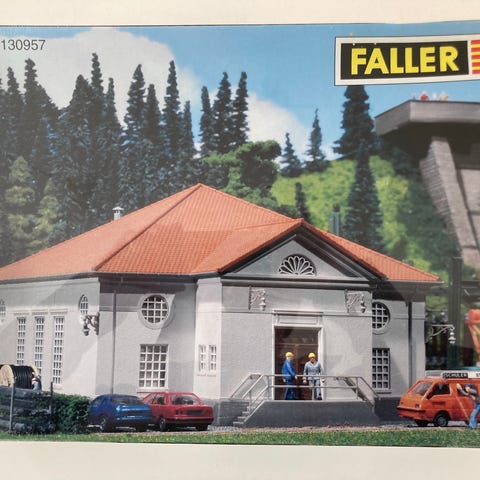 FALLER B-150 - byggesæt - Godsbanegård - m/lyssæt - arealmål: 24,8x14,4cm. - højde: 12,9cm. - skala 1:87 - HO.