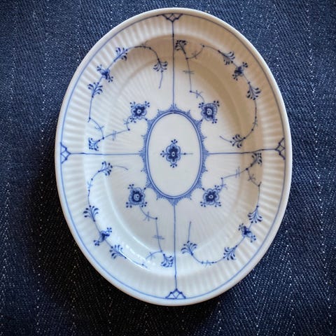 Royal Copenhagen Musselmalet halvblonde fad i flot stand og 1. sortering.