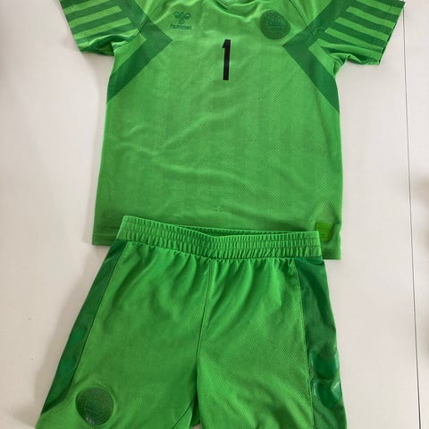 Originalt fodboldsæt bestående af fodboldtrøje, shorts og strømper. Str. 147-158 / 12-13 år. Super stand.