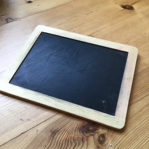 Gammel tavle, hvor man kan øve tal, bogstaver og tiden