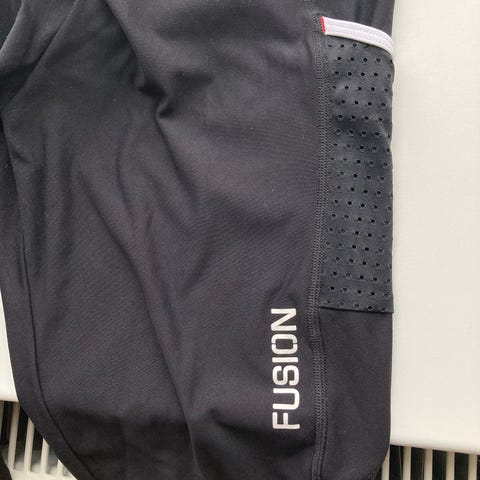 Fusion løbetights til kvinder i størrelse M. Bukserne er fremstillet i 100 % syntetiske fibre og er mærket som X-long. Modellen har meshpaneler og sidelommer, som kan bruges til småting under løb. Indersiden er blød og børstet for ekstra komfort. Velegnet til løb og anden træning udendørs.