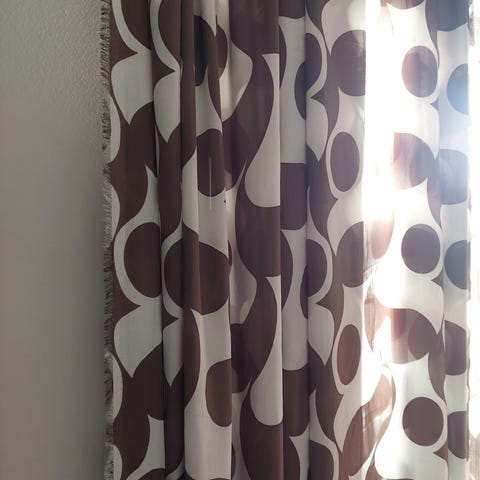 super flot gardin i orange farve 2del str. CA.B. 105 x H. 145 cm. i alt B. 210cm.næsten ny. kan hentes for 150 kr.