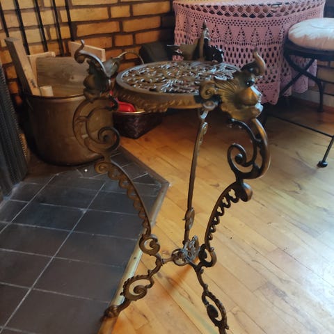 Gammel piedestal i støbejern,skulle stamme fra gammelt hotel på vestkysten i Jylland.