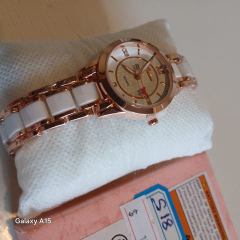 Flot og stilfuldt dame ur med krystaller og stål lænke. Nyserviceret og nyt batteri så uret går som det skal.