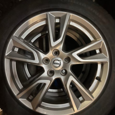 Volvo originale fælge fra V90 MY 2017, en ejer, sælges udelukkende pga. totalskadet bil (dækkene var ikke monteret på bilen under uheld) 7 mm mønster på 2 af dækkene 2,5 mm mønster på de andre 2. grunden til de ikke har ens mønster er pga. dækskifte grundet yderlig punktering der ikke kunne fixes (dækcenter anbefalede at skiftede 2 dæk, så det gjorde vi. Små kantkys på 2 af fælgene, de andre 2 står knivskarpt. Volvo fælgekode 31362838