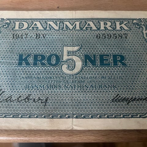 Danmark 5 kroner seddel 1954