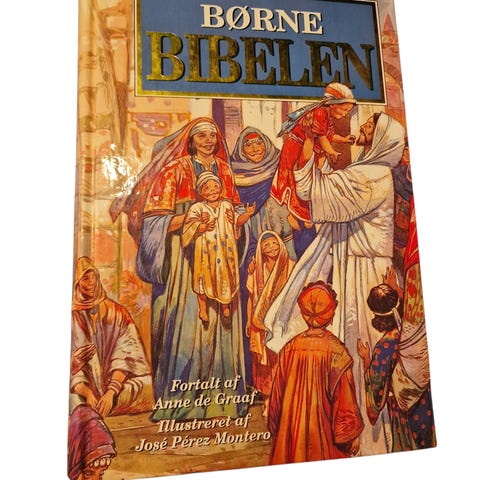 1. Børnebibelen, Genfortalt af Johannes Møllehave, indbundet 1996 uden navn i, 2000 (navn i), 2002 (navn i), 2014 (navn i), 2005 med navn I. Navn kan overskrides.. 65-85 kr, meget fine, billed 1