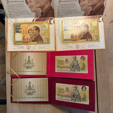 Thailandsk pengeseddel på 20 baht. Seddel med portræt og tempelmotiv samt thailandsk tekst og serienummer trykt på forsiden. Egnet til samling af udenlandsk valuta eller som dekorativt objekt for samlere af pengesedler.