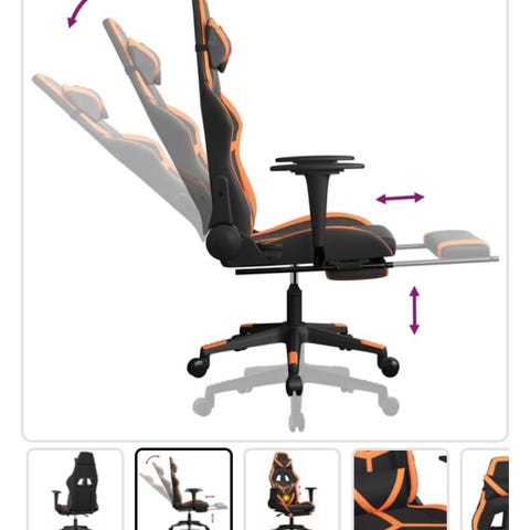 Brugt, men flot, gamingstol i sort stilrent læderlook.