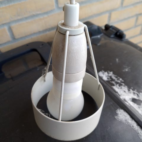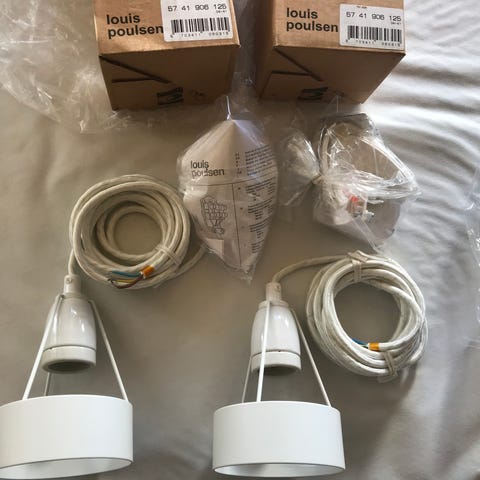 Dette er Louis Poulsen Pakhus pendellamper designet af Erik Møllers Tegnestue, fremstillet i hvidlakeret metal.