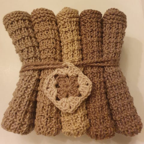 Hjemmestrikket karklude, vaskeklude. De måler Ca 26X27 Cm .