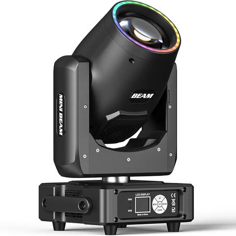 Mini 230 W 7R Beam Moving Head LED scenelys med RGB lysring 14 farver 14 mønstre Festlys forlygter til diskotek, klub, liveshow, bar, bryllup, sceneteknologi