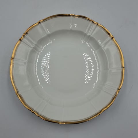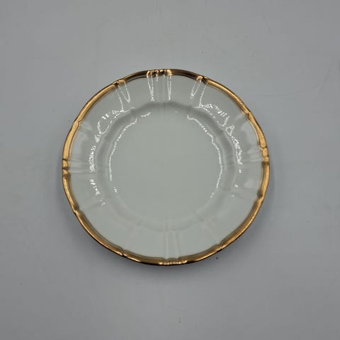 Tallerkenen har en elegant, rund form med en guldkant og en glat, blank overflade. Frokost tallerkner Bing & Grøndal No.26,Afhentes i:,Røde Kors Roskilde (265),Bemærk at mail, chat og beskeder ikke besvares, og varen skal købes på knappen "Gå til varen"