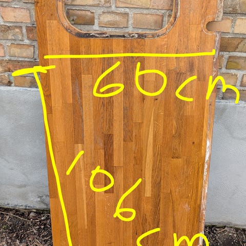 Bordpladen kan bruges til skrivebord med et stel under fx fra IKEA eller andre steder. Det kan også bruges som top til en køkken-ø eller et spisebord til lejligheden.