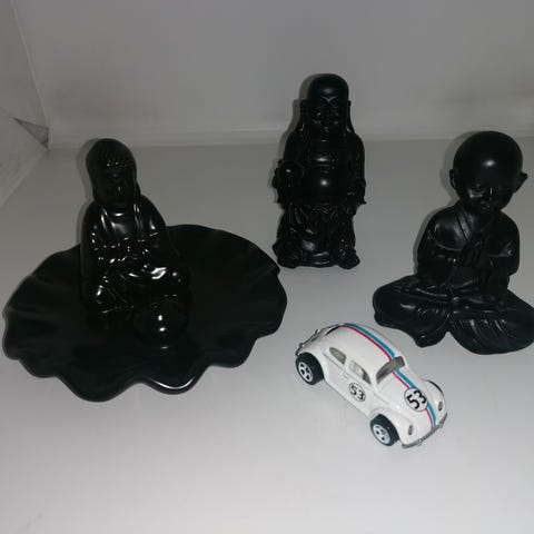 Sæt med 2 buddhaer der matcher hinanden. Grå, glaseret keramik. Fremstår som nye.