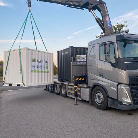 OBS ! Containeren står øverst på en anden container og skal derfor løftes ned med kran der er masser af plads til en lastbil med monteret kran