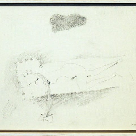 Det drejer sig om gouache og blandingsteknik på papir, med en ekspressiv abstrakt komposition i grå-, røde-, blå- og gule nuancer. Værket er signeret og dateret nederst til højre i blyant (“Ravenswaaij ’64”).