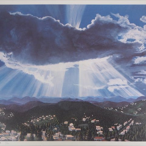 Serigrafi på vellumpapir, måler 50 x 70 cm.