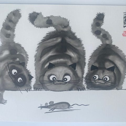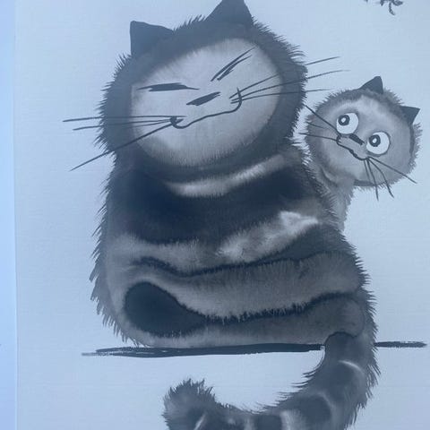 Tegning, original i kinesisk blæk på vergepapir, monteret på Canson-karton, håndsigneret, format 25 × 30 cm