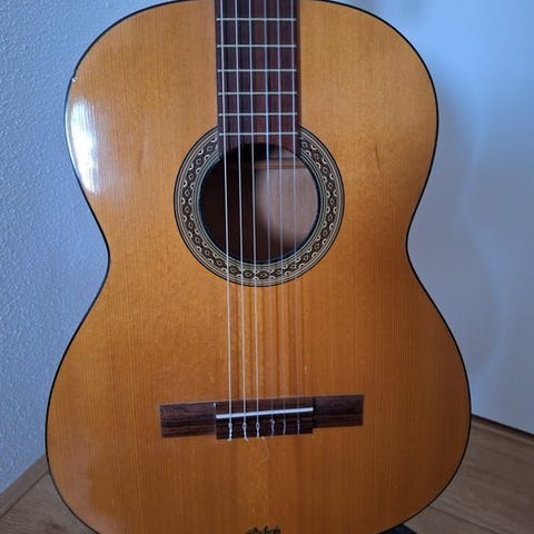Fremstillet i Frankfurt, Tyskland 1968 Gustav Menzinger klassisk guitar.