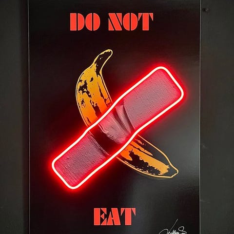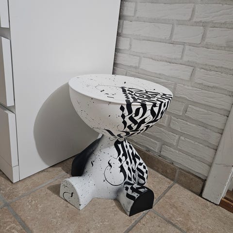 Dette værket spiller på konseptet anonymitet og mysterium ved å skildre en fullt naken kvinnefigur som sitter på en stol, mens hun holder et stort avisside foran seg som skjuler ansiktet og deler av kroppen. Avisen, innrammet av en rosa LED-neon, blir det visuelle midtpunktet i verket, og fremhever elementet av sensur og nysgjerrighet. Kontrasten mellom den opplyste neon og den vintage atmosfæren i scenen skaper en fascinerende blanding av erotikk, eleganse og provokasjon, og gir rom for betrakterens tolkning.