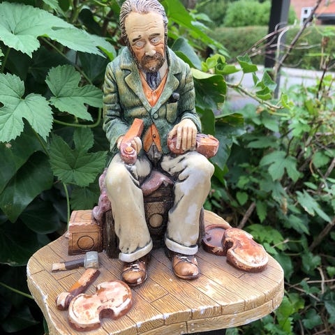 Miniaturet reproduktion af et Stradivarius violon med ramme af bladguld, lavet i Italien, af træ og glas, 40 cm bred, 52 cm høj, 5 cm dyb, ikke underskrevet, i god stand. Klik på den blå "gå til varen" knap, for at købe eller byde på denne vare. Den samlede pris vil blive vist inden du afgiver dit bud.