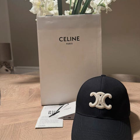 Ideel til alle sæsoner er den bomuld baseballkasket fra Celine, helt ny, aldrig brugt, med mærker.