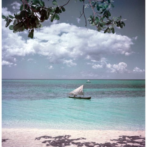 En kvindelig dykker med speargun fisker i Antigua, 1961. (Toni Frissell)
