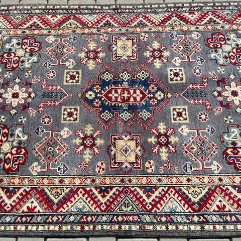 Et ægte kaukasiske tæppe, velegnet til både dekorativt brug og til samling.