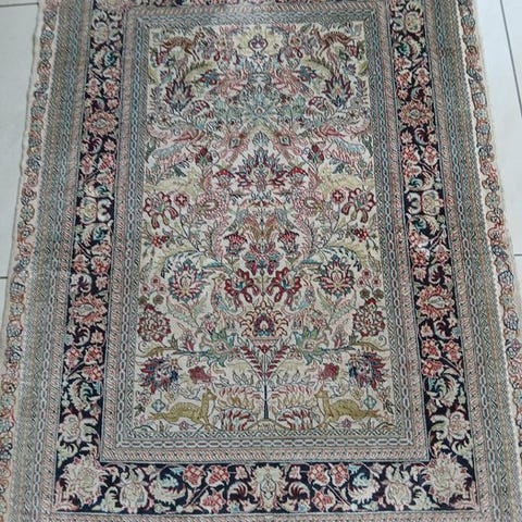 Hereke silke-over-silke tæppe fra Kina, 150 cm x 93 cm, fra det 21. århundrede, i meget god stand. Klik på den blå "gå til varen" knap, for at købe eller byde på denne vare. Den samlede pris vil blive vist inden du afgiver dit bud.