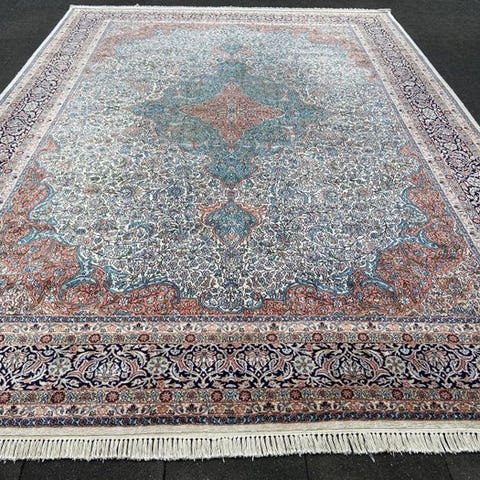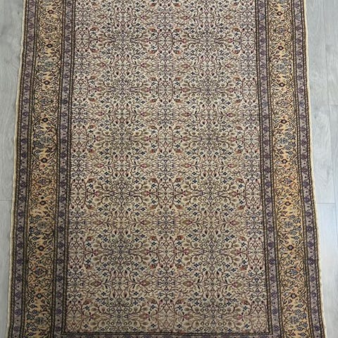 Dette er et let brugt, rent tæppe, som kan ligge sådan her. Smukt og charmerende Kayserie af 100% silke. Samlerobjekt med rig glans, også særdeles velegnet som smuk vægdekoration. Fint knyttet topstykke!