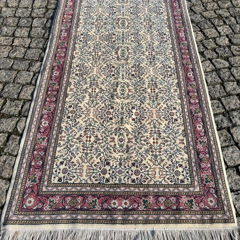 Det er et meget smukt fint silket Hereke-tæppe fra Tyrkiet. Det er superfint. Designet og farvekombinationen er meget tiltalende. Det er meget gammelt, men har altid hængt på væggen. Det er meget pænt og ligner et helt nyt tæppe. Se på billederne.