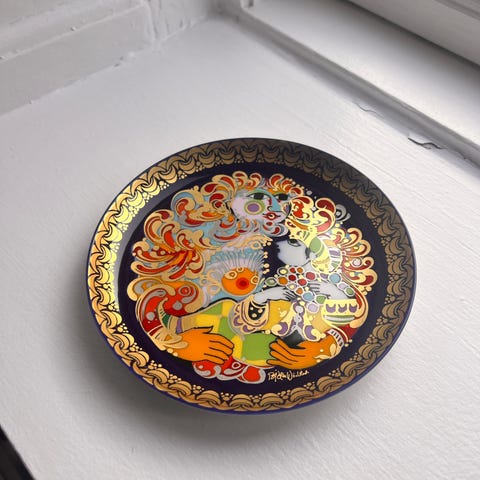 udført i overglasur. Platten er produceret af Rosenthal, men designet af Bjørn Wiinblad.