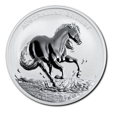 20 x 2020 1 oz 1 AUD Australsk sølv Brumby-hest mønt BU (i kapsel)