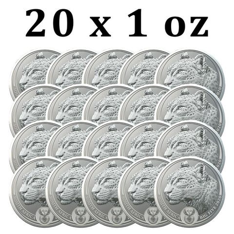 20 x 2022 1 oz 5 Rand Sydafrikansk Big Five II Sølvrhino-mønt i blisterkort