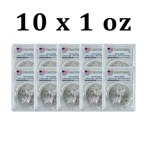 Med 1 oz rent amerikansk sølv og et smukt patriotisk design er American Silver Eagle blevet den mest populære bullion-mønt i USA. Disse imponerende 1 oz Silver Eagle-mønter blev klassificeret som perfekte MS69 af PCGS.