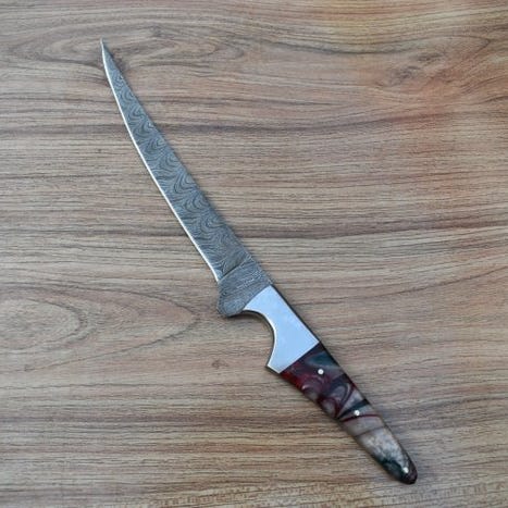Handmade 4043/15N20 Steel Fillet Knife – Curved Razor-Sharp Blade with Orange...