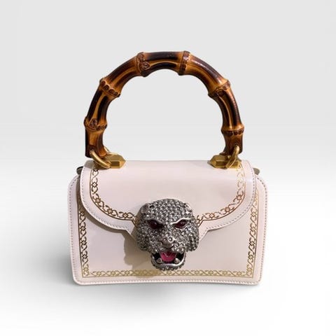 Gucci Bamboo-model i blått hamret skinn med avtagbar stropp, også den i blått skinn, med mulighet for å bæres for hånd via sitt bambus-håndtak.