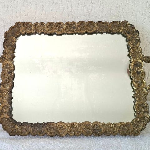 Forgyldningen er her og der slidt og falmet. Dette skaber en patina med et farvepalet af bronzefarvede, blå og gammel-silvergule nuancer. Se billederne for et indtryk.