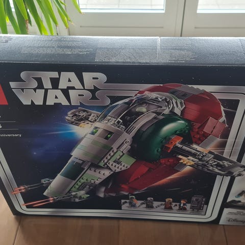 Lego Star Wars Slave I 20-års jubilæumsudgave sæt 75243, udgået siden 2019, indeholder 1007 dele og 5 minifigurer (Boba Fett, Han Solo med carbonite, Zuckuss, 4-LOM, eksklusiv Princess Leia på jubilæumsdisplay), alle dele i fabriksforseglede poser, aldrig samlet, originale stickers og instruktion inkluderet. Klik på den blå "gå til varen" knap, for at købe eller byde på denne vare. Den samlede pris vil blive vist inden du afgiver dit bud.
