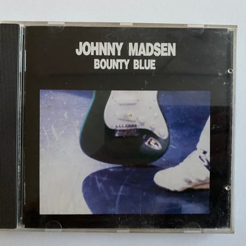 Johnny Madsen Bounty Blue cd. Musikalbum udgivet på cd i standard plastikcover med forside- og bagsidecover. Dansk rock/blues-udgivelse med Johnny Madsen som kunstner.