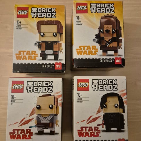 Fire LEGO Star Wars BrickHeadz sæt, numre 41627, 41628, 41602 og 41608, uudnyttede og i originalt forseglet emballage. Klik på den blå "gå til varen" knap, for at købe eller byde på denne vare. Den samlede pris vil blive vist inden du afgiver dit bud.