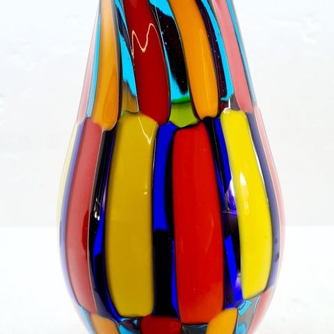 Fremragende vase med stopper af hånd af den mesterlige designer/glasblæser A. Ballarin i Venedig (Murano).