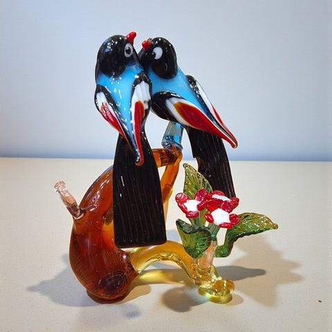 Gren med fugle i Murano-glas.