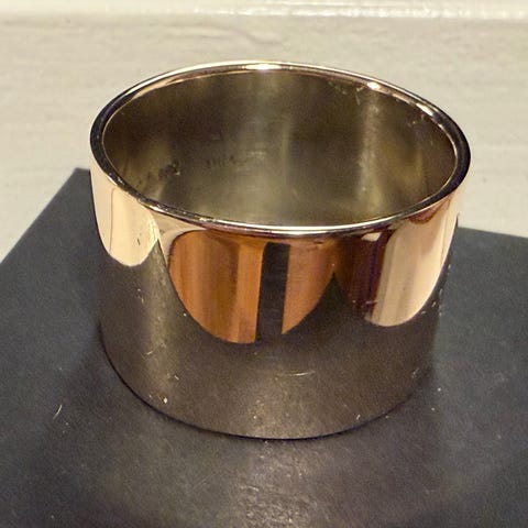 Størrelse 73, flot bred ring, stemplet 585 samt mesterstempel