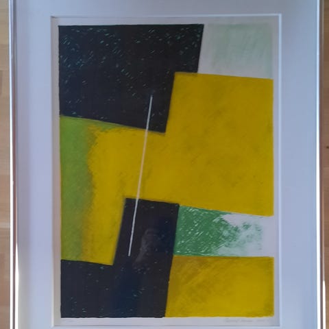 En samling af litografier/ tryk som Alle er i aluramme og med glas , samt Akryl malerier
