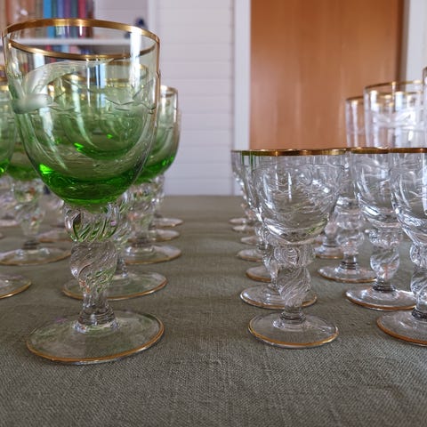 Glas, Vin, vand, øl og snapseglas , Lyngby mågeglas uden måge, 67 glas i alt. 12 vand, 12 øl, 12 rødvin, 8 hvidvin, 12 likør og 11 snaps. Har fået oplyst at de er fra lyngbyglas og er maageglas - uden maage. Samlet pris. Afhentes i Middelfart midtby